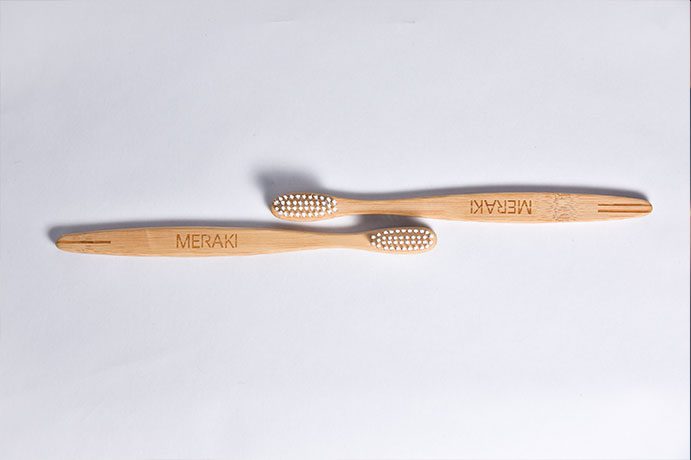 El cepillo de dientes de Meraki es, según presenta Martín, “distinto”. ¿Por qué? Está hecho en un 97% de bambú, una materia prima sustentable y biodegradable. Cada cepillo se ofrece en tres variedades, según las cerdas: suaves, medias y duras. Su vida útil es idéntica a recomendada por los odontólogos para un cepillo de plástico, pero, al concluir su vida útil, viene el gran diferencial: no perdura años sin degradarse, contaminando el ambiente como lo hacen los cepillos de plástico, sino que se descompone fácil y rápidamente, volviéndo al ciclo propio de la naturaleza.